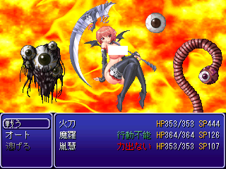 | 火刀 | ・攻撃担当。技を出し続ける。 ・回復が追いつかないときは胤慧とともに回復役に。 ・レベルによって敵より行動が遅いので回復対象は注意する。 |